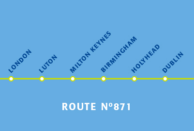 Travel on any Bus Eireann Expressway service to connect at Dublin with the Eurolines service and onwards to over 400 major British destinations